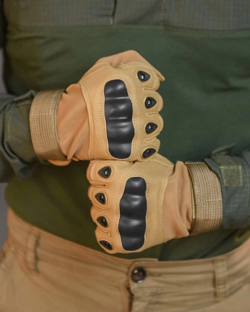 Тактичні рукавички із закритими пальцями та посиленим протектором розмір XL хакі GLG2205