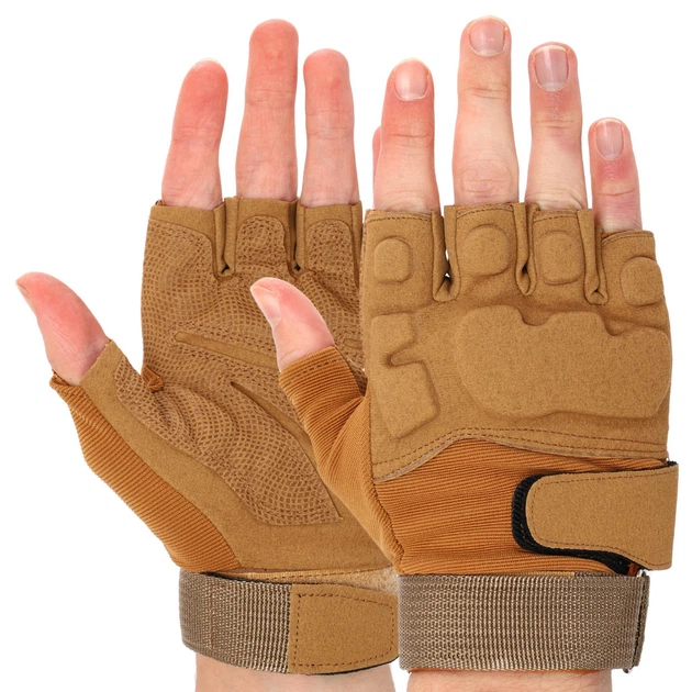 Перчатки тактичні з відкритими пальцями (PL, пластик, шкірозамінник, р-р L, Хакі) (BC-8805ХакіL)