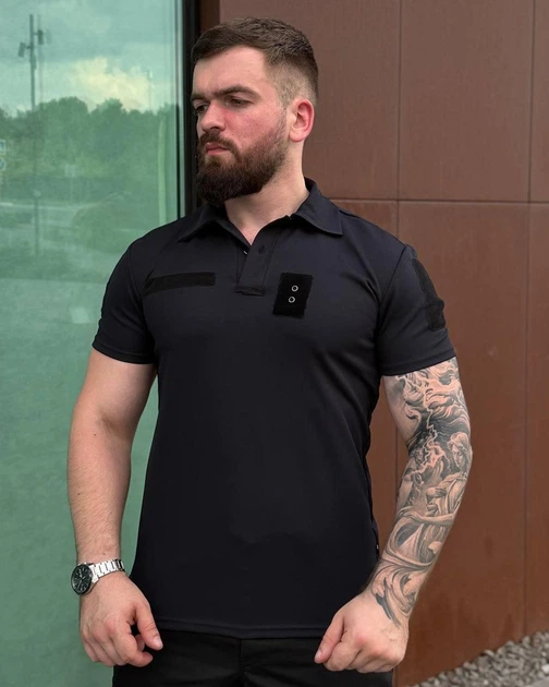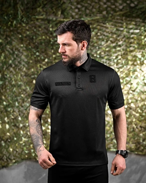 Поло Patriot з липучками під шеврони чорне розмір 2XL