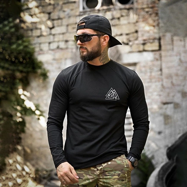 Лонгслів тактичний з принтом РУНІ 2XL чорний