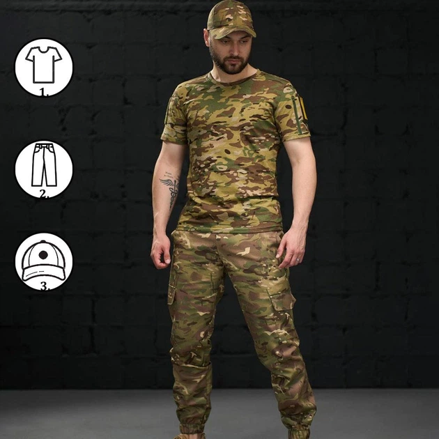 Чоловічий міцний Костюм 3в1 Футболка + Штани + Кепка / Легка польова Форма мультикам розмір S