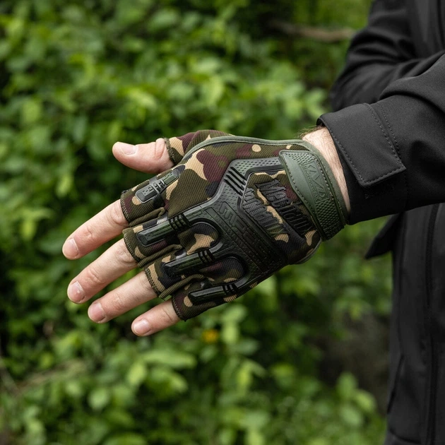 Тактичні рукавички без пальців із захистом кістяшок Adventure XXL Камуфляж 026p