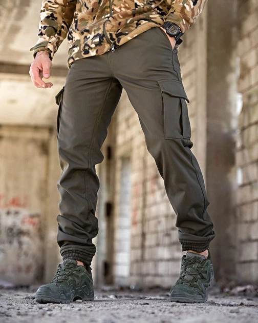 Утеплені чоловічі штани Intruder Peak Softshell з 6-ма кишенями / Щільні Брюки на флісі хакі розмір M