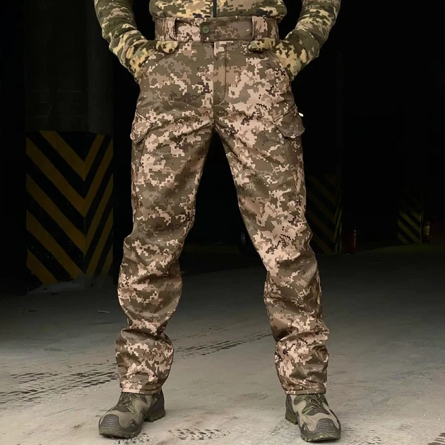 Зимові чоловічі штани Intruder Peak Softshell з 6-ма кишенями / Щільні Брюки на флісі піксель розмір L