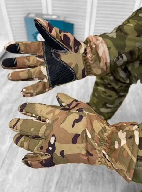Зимові чоловічі тактичні рукавиці One Size з флісовим утепленням водонепроникні протиковзькі сенсорні мультикам