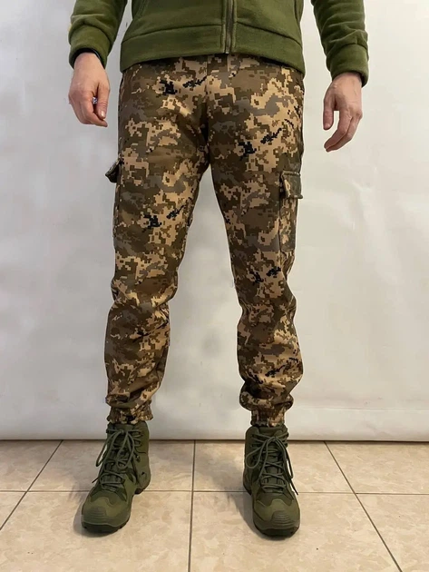 Чоловічі штани утеплені джогери яструби на флісі, піксель, пояс на резинці, M