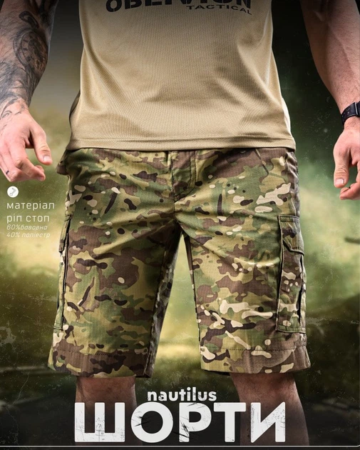Шорти Nautilus Мультикам ріпстоп з поясом на резинці бавовна поліестер XXL