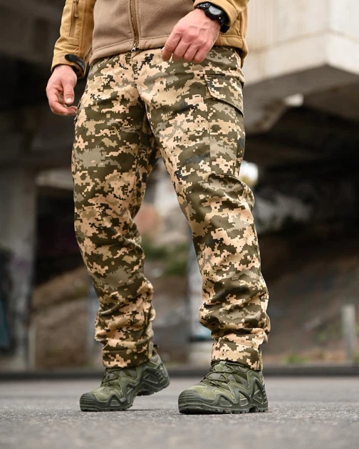 Зимові чоловічі штани Піксель армійська саржа з флісом утеплені манжети на хлястиках XXXXL