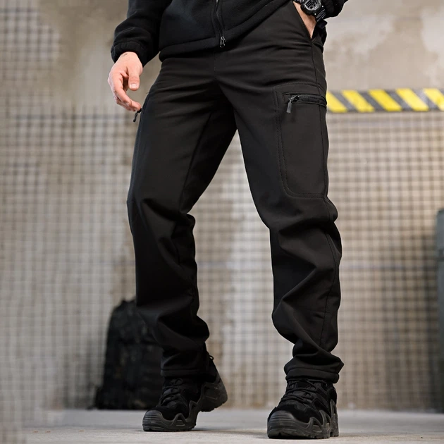 Демісезонні Штани - Карго Pobedov Static SoftShell на флісі чорні розмір 2XL