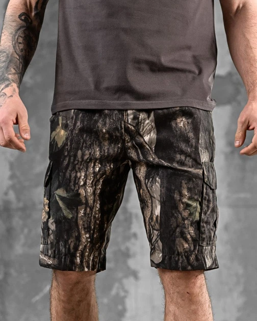 Шорти камуфляжні Ліс саржа пояс на резинці повні розміри XXL