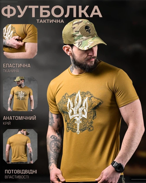 Комплект тактична футболка та кепка Coolmax з шовкографією Coyote XXL