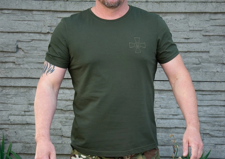 Футболка Кіраса натільна чоловіча з вишивкою у вигляді знака ЗСУ ХХL стрейч-кулір хакіі 421-1