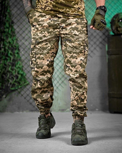 Тактичні чоловічі штани - саржа, манжети на резинках, анатомічний крій, для армії та outdoor Піксель S