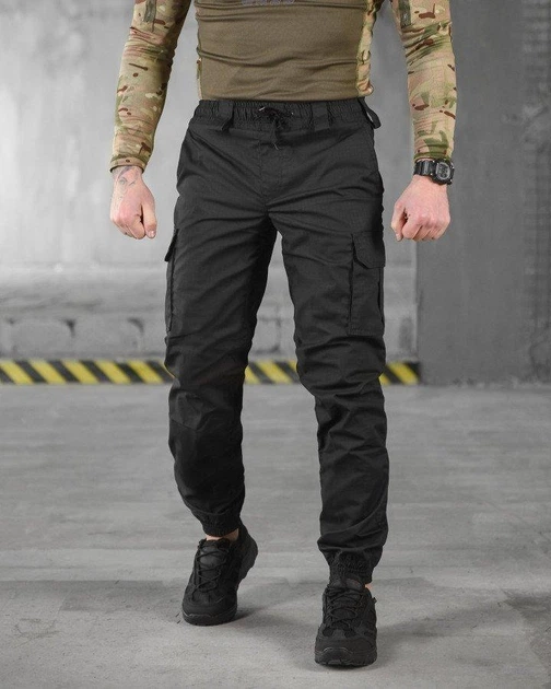 Тактичні чоловічі штани - саржа, манжети на резинках, анатомічний крій, для армії та outdoor Black XXL