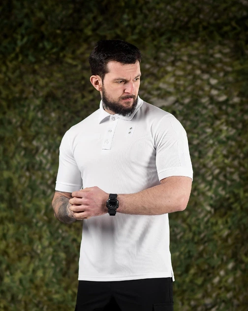 Тактична потовідвідна футболка поло біла S (14283)
