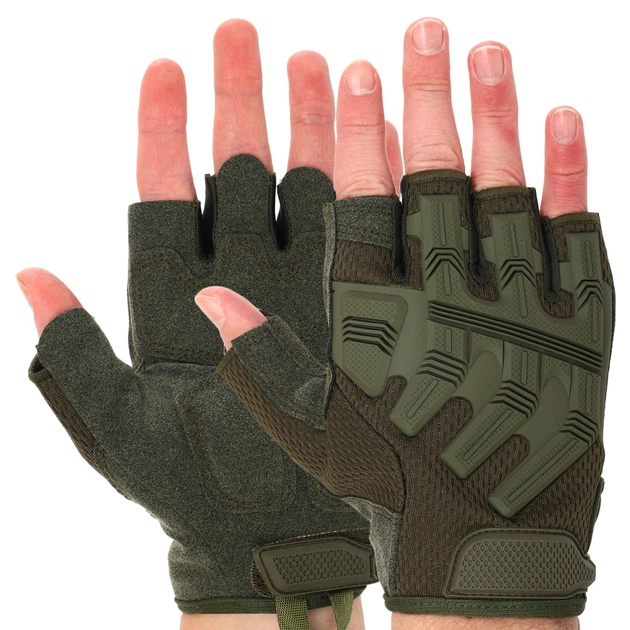 Рукавички тактичні розмір XL Поліестер / Поліуретан з відкритими пальцями Zelart оливковий колір BC-8808