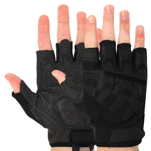 Рукавички тактичні розмір L Поліестер / Поліуретан з відкритими пальцями Zelart колір чорний BC-8808