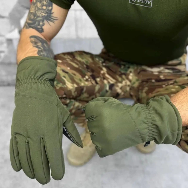 Тактичні зимові рукавички XL до -20 сенсорний палець Soft-Shell повнопалі хакі нові