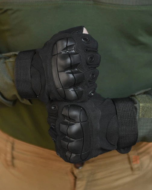 Безпалі рукавички Outdoor Tactics Black з захистом кісточок і посиленою долонею з нубука XXL