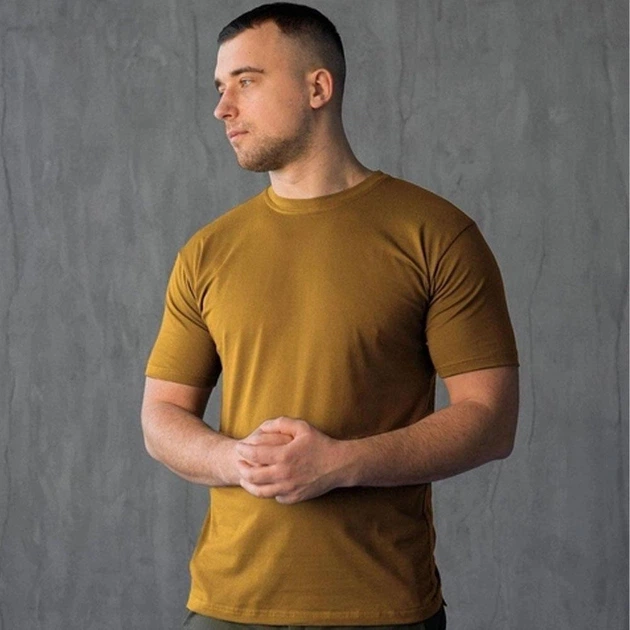 Легка Бавовняна Чоловіча Футболка з круглою горловиною койот розмір 2XL