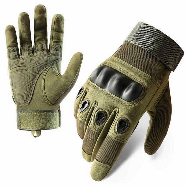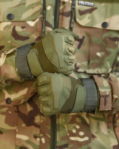 Тактичні рукавички XL текстиль зелені із захистом на кісточках повнопалі штурмові для чоловіків