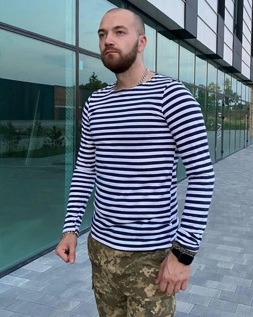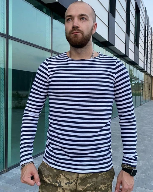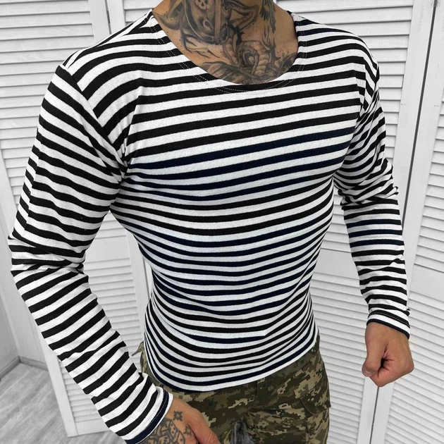 Чоловіча утеплена Тільняшка в полоску / Трикотажна Кофта на байці чорно-біла розмір 4XL