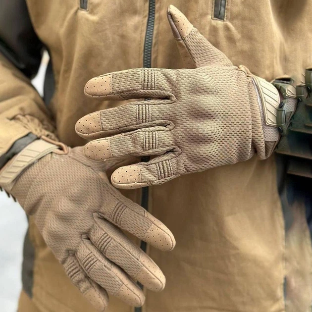 Літні Сітчасті Рукавиці з посиленими пальцями та антиковзним покриттям койот розмір XL