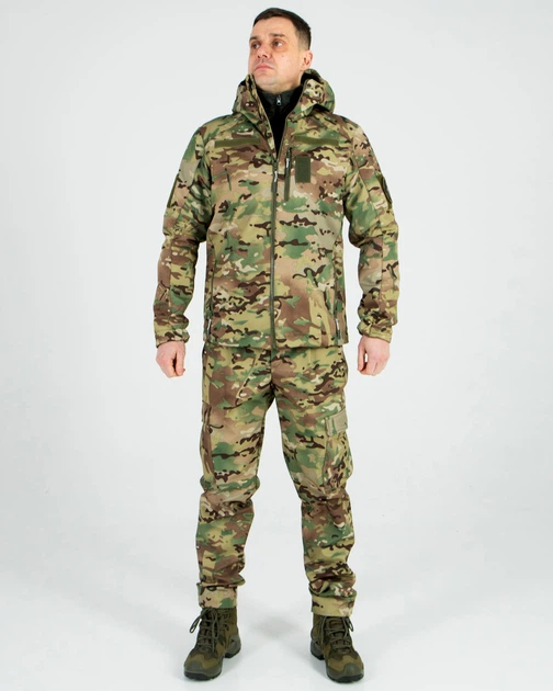 Костюм камуфляжний утеплений на флісі, куртка з капюшоном, тканина софтшелл Мультикам 56