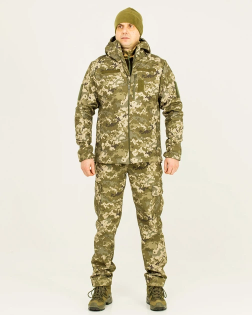 Костюм камуфляжний утеплений на флісі, куртка з капюшоном, тканина софтшелл піксель 48