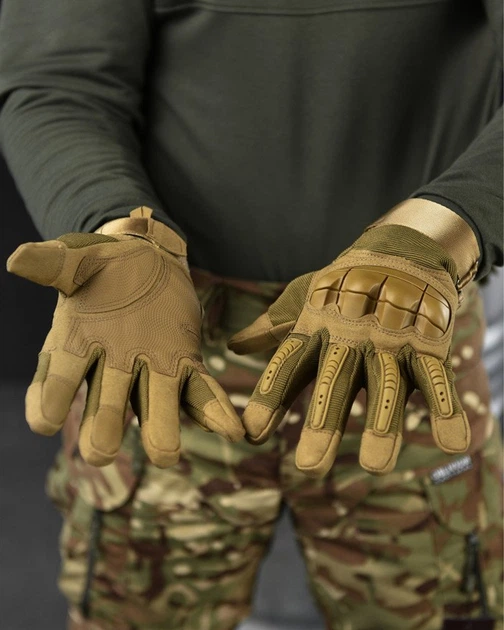 Тактичні Рукавиці з карбованими накладками койот розмір M