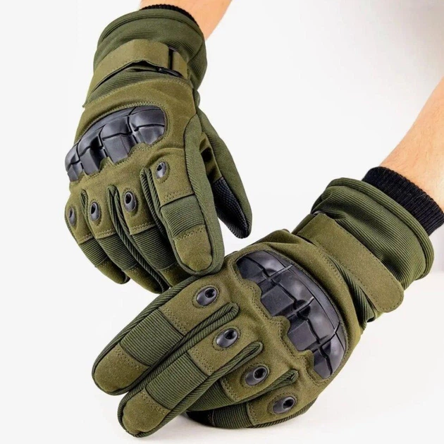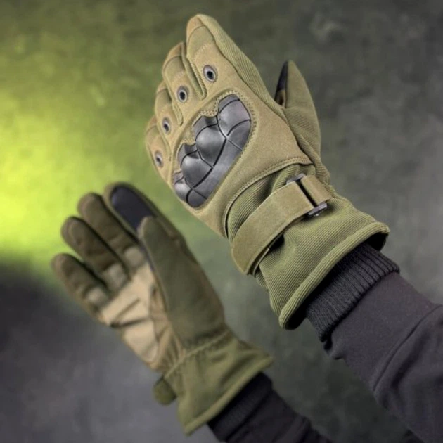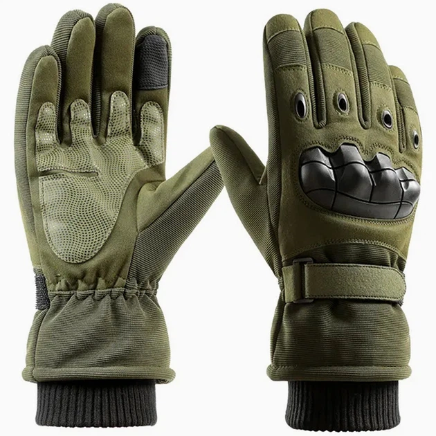 Тактичні зимові рукавички M водонепроникні утеплені на хутрі повнопалі штурмові оливковий мікрофібра синтетична шкіра до -20