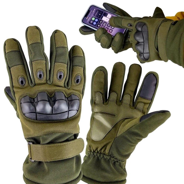 Тактичні зимові рукавички XXL водонепроникні повнопалі оливкові із сенсорним пальцем фліс мікрофібра хутро