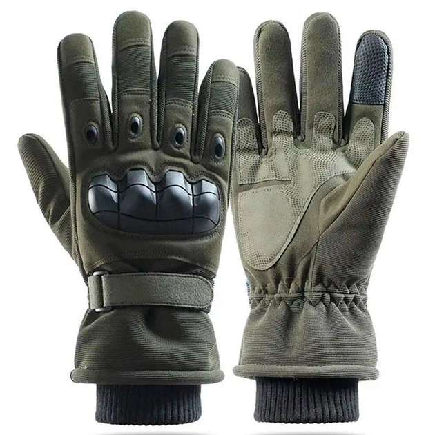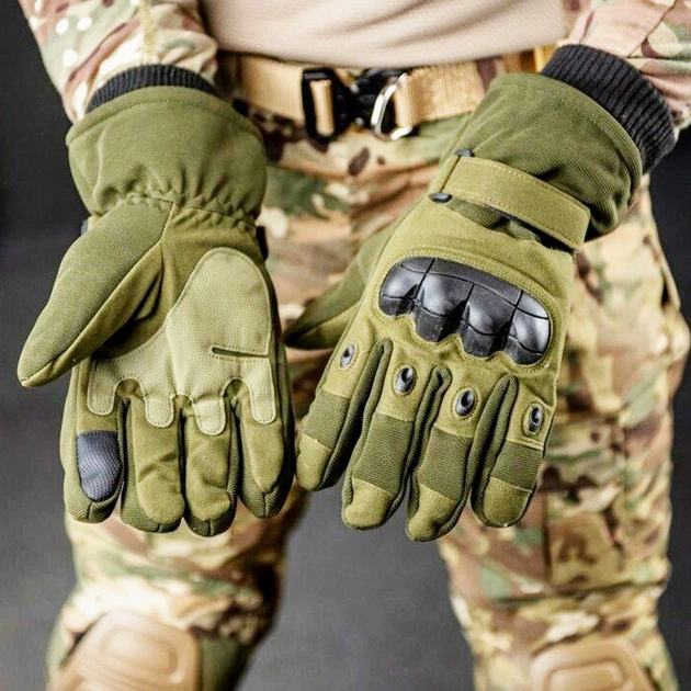 Тактичні зимові рукавички M 25.5х11 см із захистом на кісточках пальців та вентиляцією колір Хакі