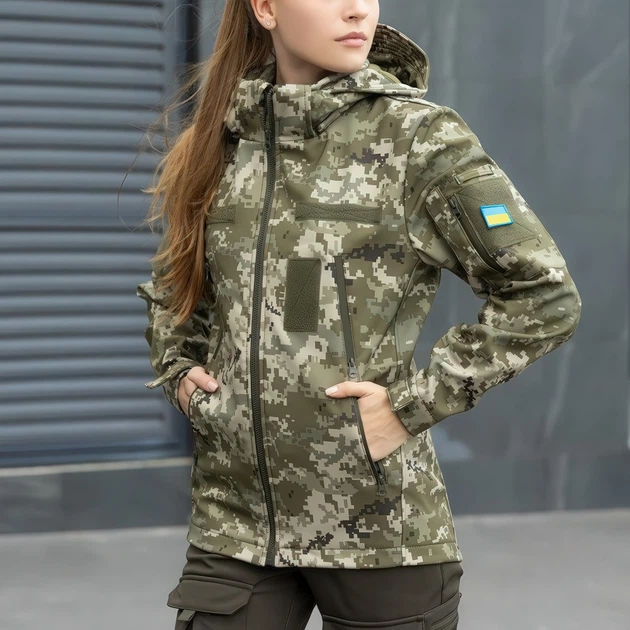 Куртка Жіноча SoftShell з Velcro панелями + Подарунок Шеврон Прапор України піксель розмір S