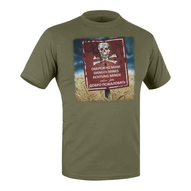 Футболка з малюнком P1G Dangerous Mines Olive Drab M (UA281-29891-OD-DNG)