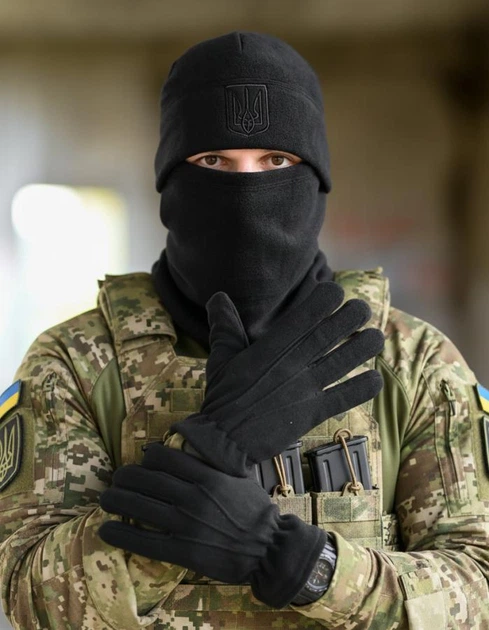 Тактичний флісовий комплект 3 в 1 Black POLAR шапка бафф рукавички зимові теплі