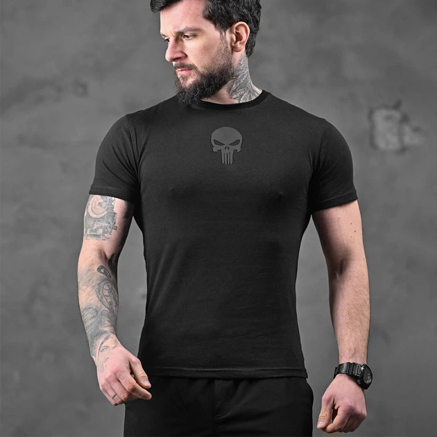 Тактична футболка з принтом Каратель чорна розмір 2XL