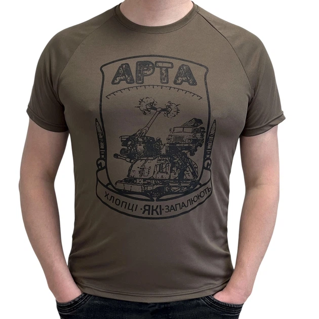 Тактична футболка чоловіча військова потовідвідна з принтом "АРТА" CoolPass Antistatic 2XL Хакі