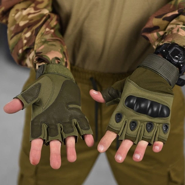 Щільні безпалі Рукавиці із захисними накладками хакі розмір 2XL