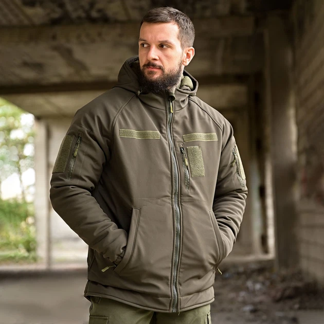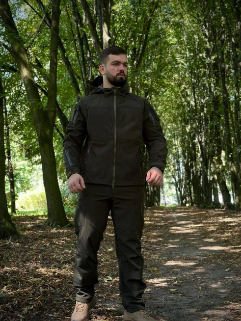 Чоловіча Форма Softshell на флісі Куртка з капюшоном + Штани олива розмір S