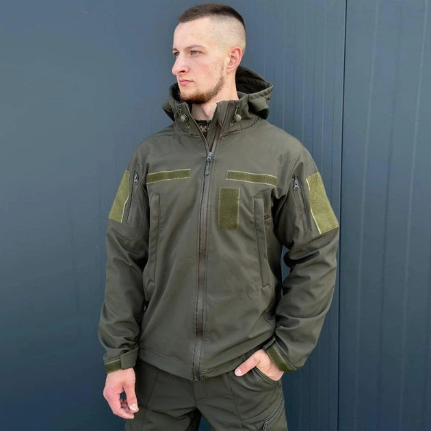 Чоловіча Куртка Softshell з Флісовою підкладкою олива / Демісезонний верхній одяг розмір M