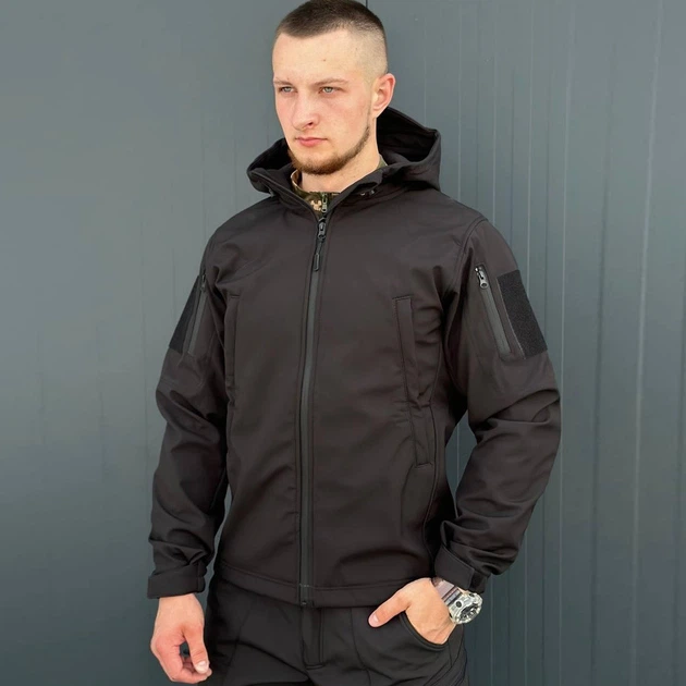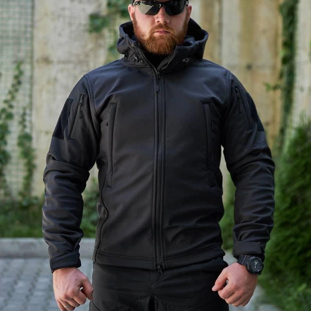 Тактична куртка R-Military Eagle Softshell з липучками під шеврони чорна розмір L