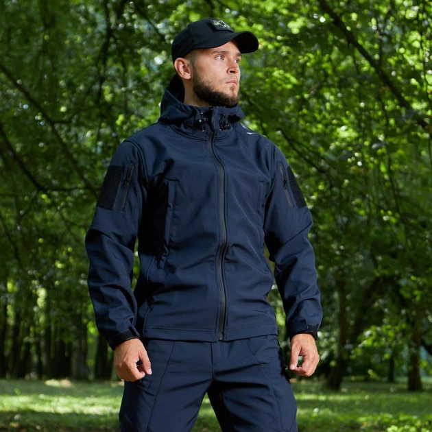 Тактична куртка R-Military Eagle Softshell з липучками під шеврони синя розмір 2XL