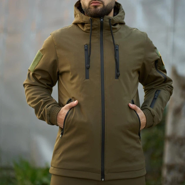 Чоловіча Куртка Softshell з Флісовою підкладкою олива / Демісезонний верхній одяг розмір 3XL