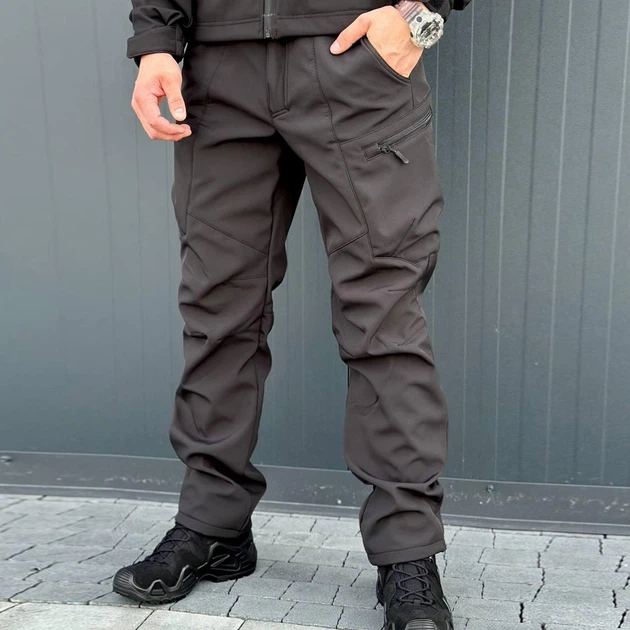 Демісезонні Чоловічі Штани на флісі / Утеплені Брюки Softshell чорні розмір L