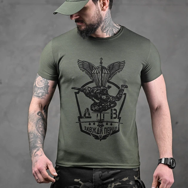 Потовідвідна футболка з принтом ДШВ олива розмір 2XL