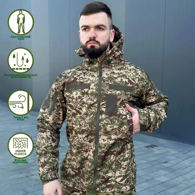 Куртка SoftShell на флісі з липучками для шевронів хижак розмір 3XL