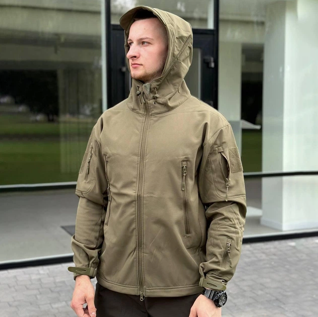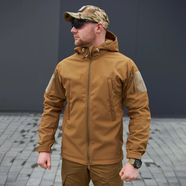 Тактична куртка R-Military Eagle Softshell з липучками під шеврони койот розмір M