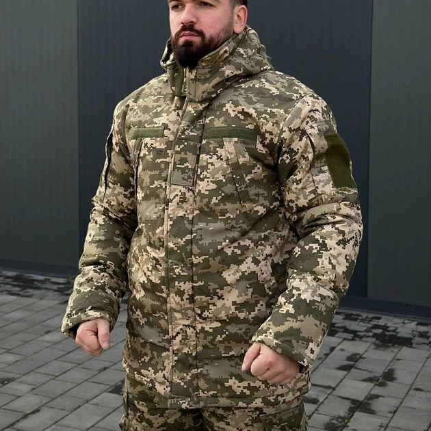 Чоловіча зимова Куртка із Липучками під шеврони / Водонепроникний Бушлат "Дюспо" піксель розмір S