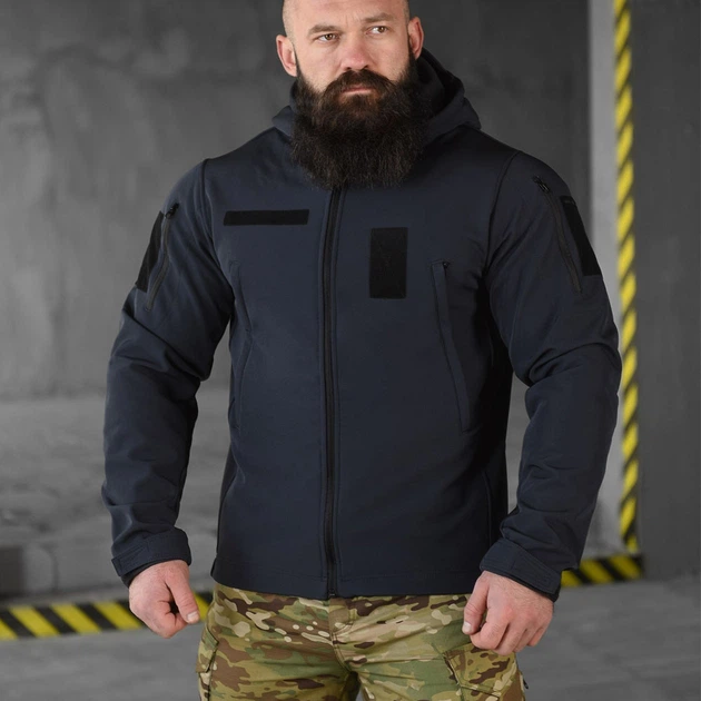 Демісезонна Куртка з капюшоном Softshell на флісі синя розмір 3XL